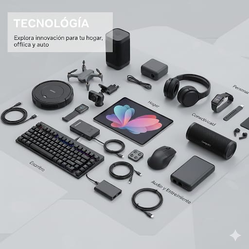 Productos variados de tecnología de : hogar, escritorio, vehiculos,audio,entretenimiento.